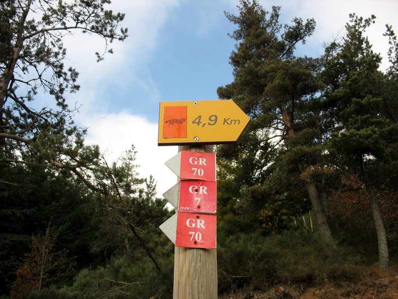 les sentiers de grande randonnée (GR) sont balisés blanc et rouge. Mais le Chemin de Stevenson bénéficie d'une popularité telle, que son balisage est souvent « customisé » par les locaux...