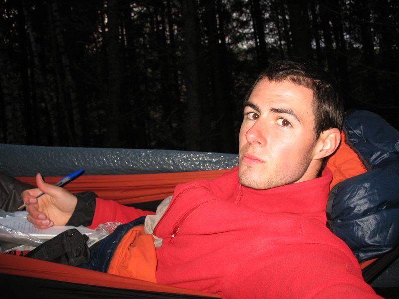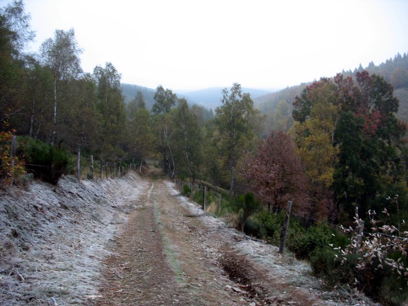 Cinquième matin. C'est aujourd'hui que je dois monter au Mont-Lozère (Alt 1600m), et après une nuit presque correcte je suis frappé de découvrir le sol gelé. Certes j'avais froid, mais à ce point? Cette nuit, la température est largement descendue en-dessous de 0°C dans mon hamac.