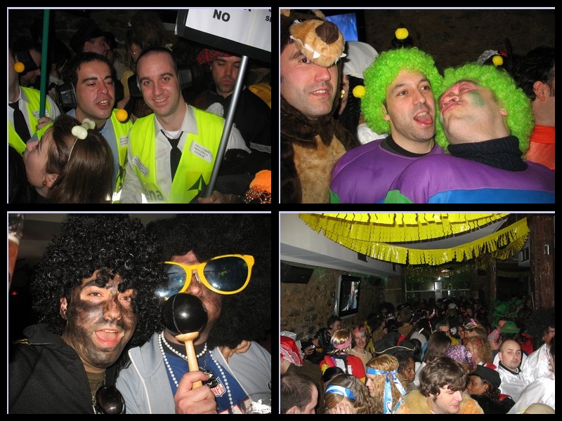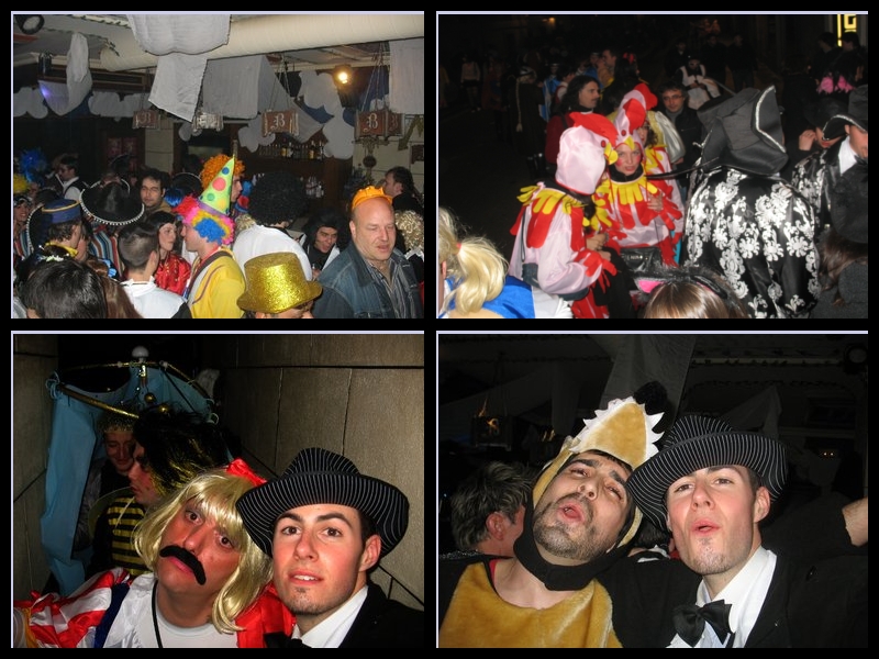 Le jour du Carnaval, c'est Carnaval:on a le droit de s'habiller comme on veut ; mais pas seulement pour la soirée, pour la journée également. C'est comme ça que j'ai croisé à 11h du matin Cruella, accompagnée de 3 marmots : Pocahontas, un cow-boy et un ninja. À côté, un couple faisait du lèche-vitrine : l'homme habillé en cow-boy avec un authentique pantalon à franges et un Stetson, tandis que sa copine était déguisée en Catwomen.