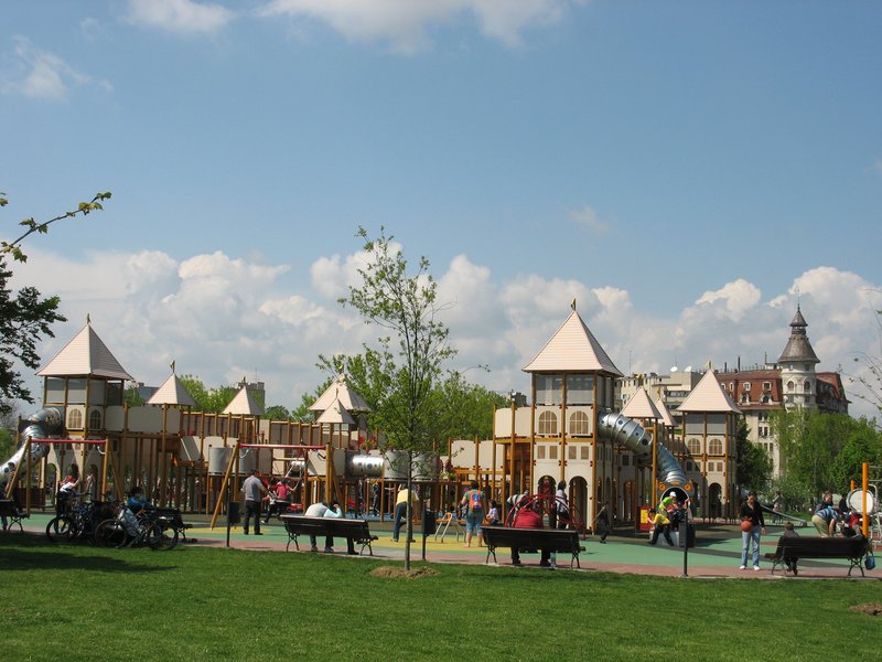 Détail amusant : juste en face de l'immense palais, s'étend un joli parc, avec cet imposant jeu pour enfant. La municipalité est plutôt confiante, moi j'aurai eu peur d'inculquer la mégalomanie à des dictateurs en culotte courte...