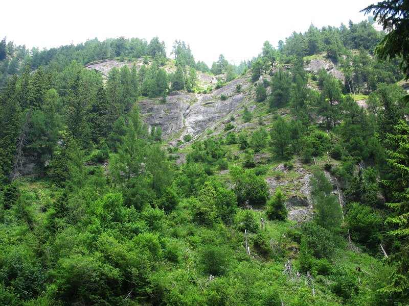 Malgré la pente, la végétation s'accroche coûte-que-coûte. La vallée, bien qu'encaissée, forme une haute cuvette verdoyante.