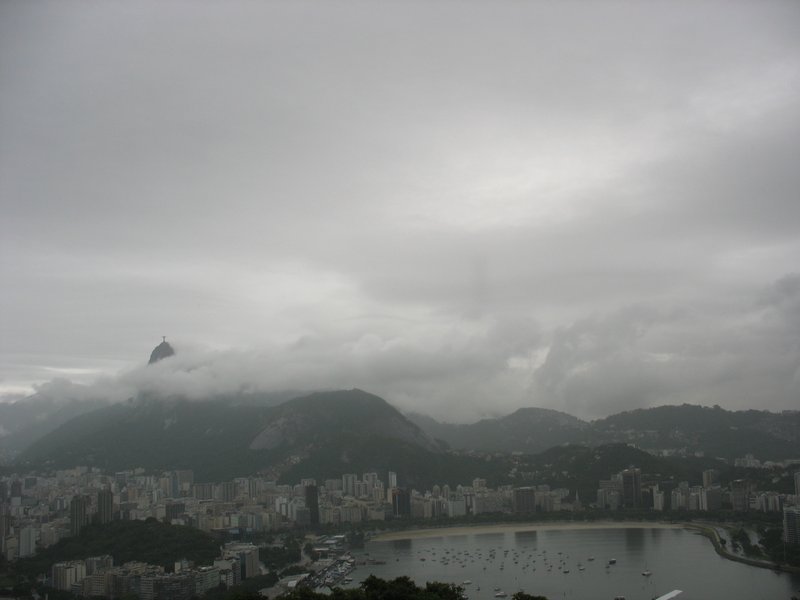 Dommage, aujourd'hui il ne fait pas beau ; c'est encore un des jours où la ville côtière est assaillie d'une épaisse vague nuageuses enserrant ses montagnes et les favelas les plus perchées. Impensable de monter au Corcovado, enfermé dans une nasse opaque depuis ce matin...mais pour le Pain de Sucre, tout n'est peut-être pas perdu! Tentons...
