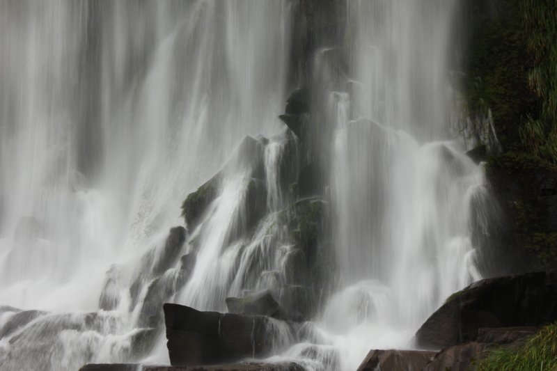 Mais ce tableau, aussi immuable qu'il soit, est animé depuis sa création par la chute perpétuelle du fleuve et par un millier d'autres détails : l'élégance des gouttelettes virevoltantes, les jeu de lumière dans les éclaboussures, les herbes scintillantes soufflées, la pierre stoïque sous le martèlement continu ...et ce bruit, ce vrombissement continu qui dispense la contemplation de tout commentaire.