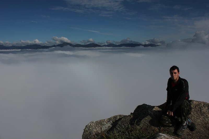 Pedra Selada, c'est un peu MA montagne, d'abord parce que c'est le premier chemin que j'ai découvert tout seul au Brésil ; ensuite parce que le lieu est simplement féerique. On y accède par un sentier de 3km qui serpente dans la jungle, la pente est raide, le terrain glissant et l'humidité étouffante. Mais une fois au sommet, c'est à dire sur le caillou nu de quelques mètres de large qui domine la vallée, une fois là-haut, la paix est totale. Le vent souffle rarement, le silence est complet et la vue se perd dans les vallons des Aiguilles Noires autour. Debout sur la pointe du rocher, entouré du précipice, je suis comme à la proue d'un voilier devant l'étendue de l'océan.