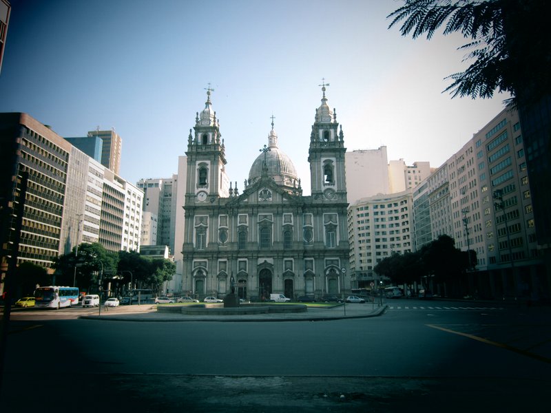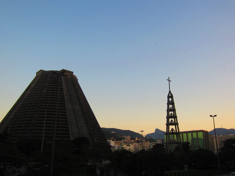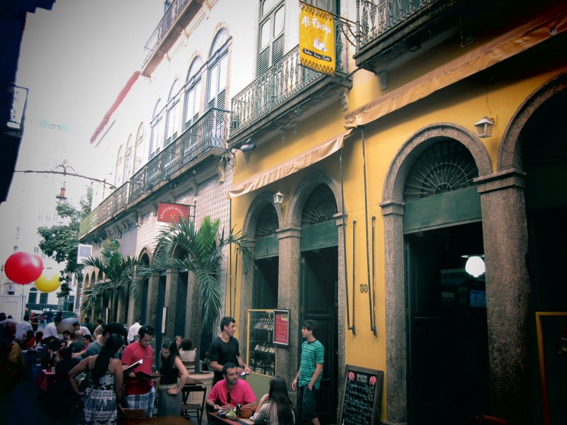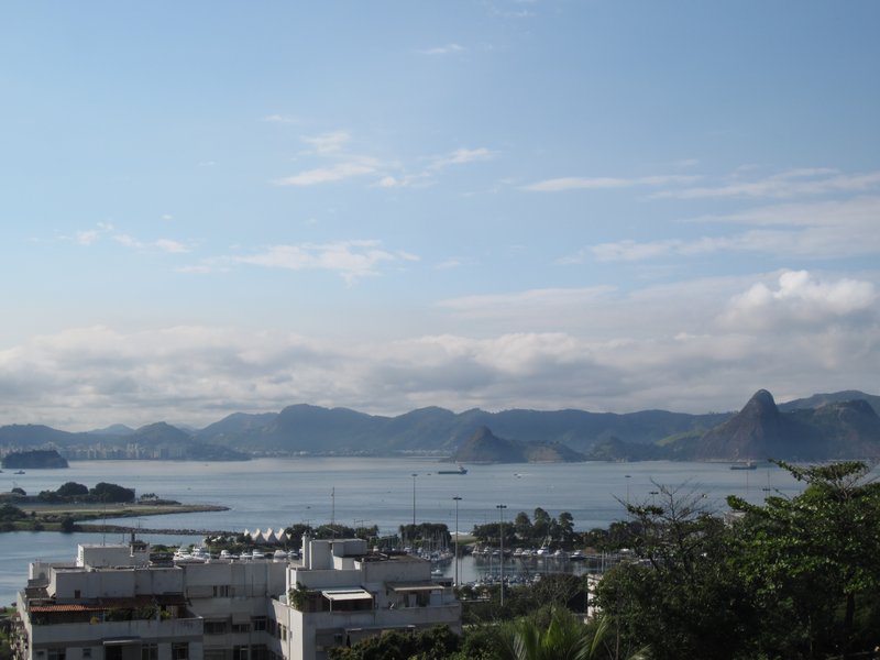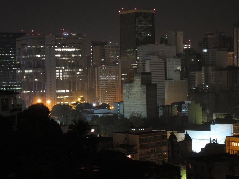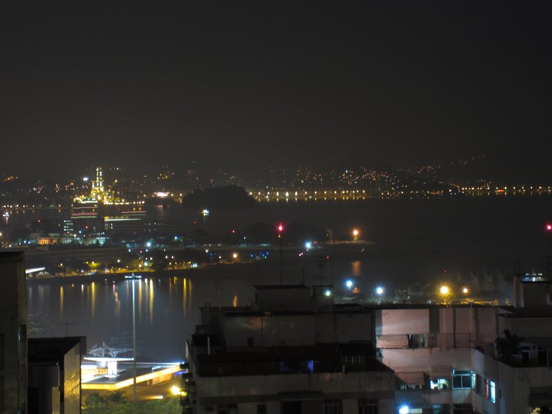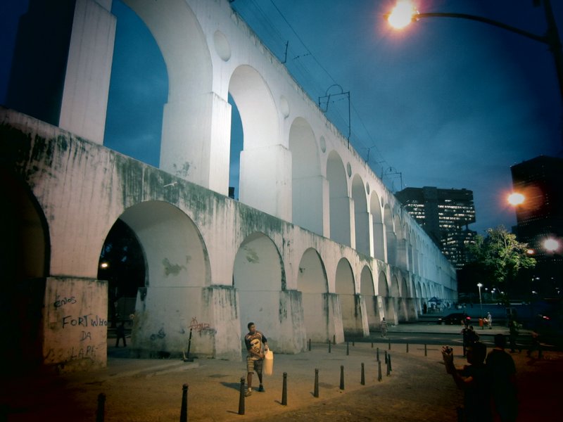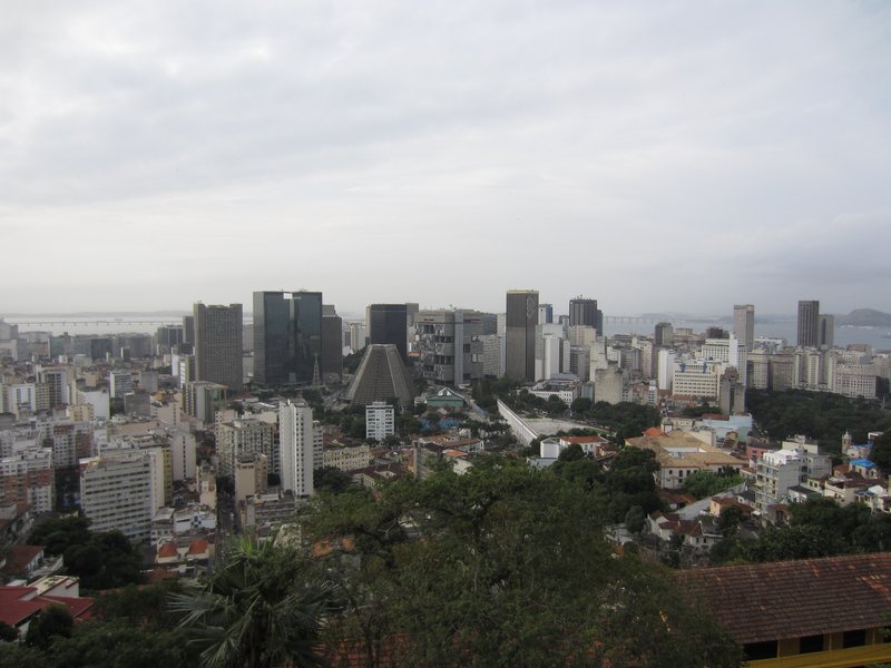 Lapa (arches centre-droite) et Centro. En arrière plan, de gauche à droite : le pont de Niteroi