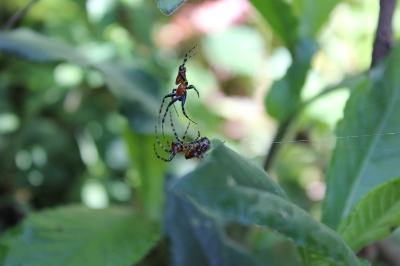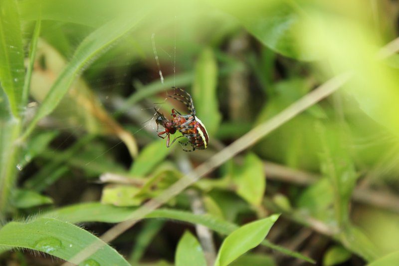 Araignée à carapace qui bouffe une araignée moins chanceuse