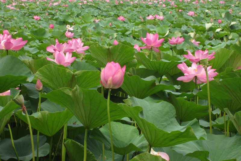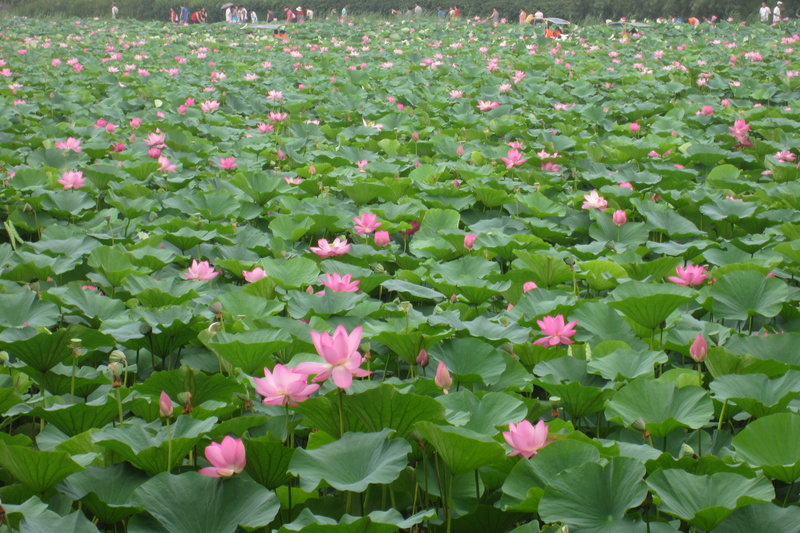 Il parait que la période d'éclosion des Lotus est très courte, c'est donc une chance d'être tombé dessus aujourd'hui! J'en profite pour faire quelques photos ; les chinois, eux aussi, font quelques clichés, mais ne prennent pas en photos les lotus : c'est moi qu'ils photographient! Certains font semblant d'être discret(es), d'autres pas. J'essaie d'imaginer ce qu'ils feront de ces photos...Et je souris toujours, en espérant secrètement qu'un jour l'un d'eux affiche ma photo chez lui, sur la cheminée, entre le portrait de Mao et celui de la dernière gagnante de Voice of China.