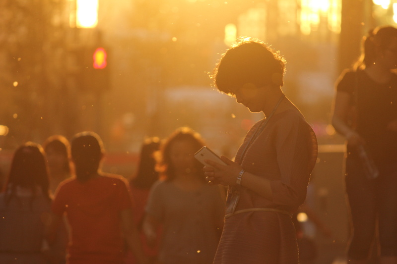 Shenyang est bucolique me direz-vous? Ne vous y trompez pas : il s'agit seulement d'une invasion de pollen dans une rue bondée, bruyante et artificiellement luxueuse, sous un soleil prématurément rougit par la couche de pollution. Notre princesse ne cherche pas son prince charmant en laissant glisser son regard attendri au lointain ; non, elle tapote sur son portable. Alors pour l'authentique cliché romantique, on repassera!