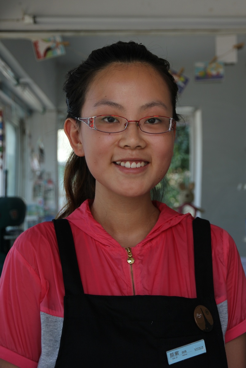 Lorsqu'elle nous a servi deux authentiques "Ice Tea" fait maison, elle y a mis tout son sérieux, comme dans un bar chic. Pourtant, la jeune Qie Zi (c'est ce que son badge indique) travaille dans un petit box, au carrefour poussiéreux d'un quartier populaire. (Quel quartier n'est pas populaire en République Populaire de Chine?).