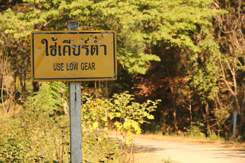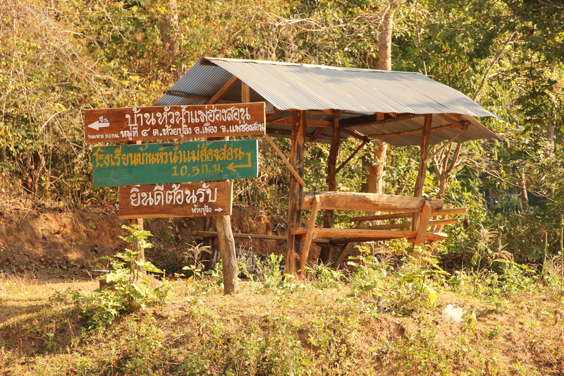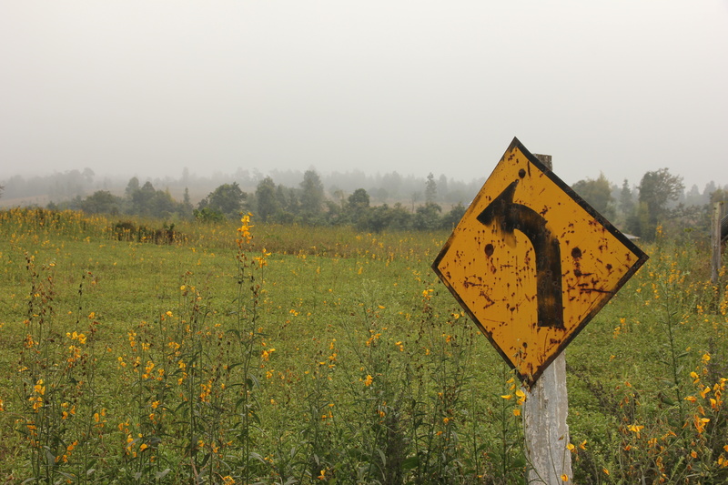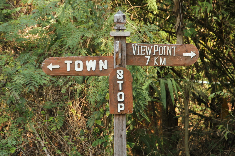 Tout seul sur la piste, perdu dans l'infini succession des collines et l'immensité des horizons, les bornes et panneaux indicateurs deviennent des jalons essentiels. Ils matérialisent les kilomètres parcourus, la sueur dépensée, les heures passées. Métal au milieu du végétal, les panneaux me rappellent que cette étroite bande de poussière dans un océan de forêt est mon seul fil d'Ariane.