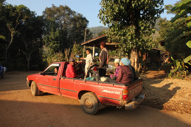 Il n'y a que deux types de véhicules sur la piste : les photos de 125cm3 et les gros pick-ups (souvent des Isuzu plus tout neuf). Quelque soit leur vitesse, leur chargement, le nombre de passagers, l'heure et l'endroit : 80% d'entre eux se sont arrêtés à ma hauteur pour me demander où j'allais, la moitié m'a proposé de monter et le pick-up qui m'a transporté sur plus de 15km s'est étonné que je lui donne de l'argent et a ensuite refusé catégoriquement.