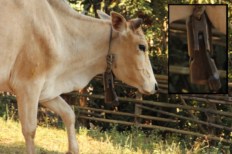 J'étais déjà sous le charme de l'ingéniosité de ces architectes de la jungle avant d'apercevoir cette magnifique "cloche en bois". Évidemment, ça ne sonne pas aussi bien qu'une clochette en laiton, mais la vache est accompagnée d'un noble "tonk-tonk-tonk". Unique.