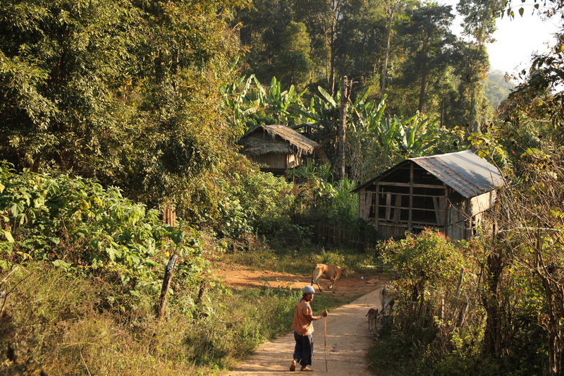 Ici, en Thaïlande, j'ai également 20kg sur le dos, mais je n'ai absolument pas prévu de marcher en autonomie. je n'ai pas de réchaud, pas de tente, presque pas de nourriture...Sans point de chute, mon trek s'arrêtera rapidement. Faisant une confiance aveugle à ma première impression de Novembre, je m'en remets totalement à l'hospitalité des villages. Encore faut-il trouver un village dans ces collines oubliées.